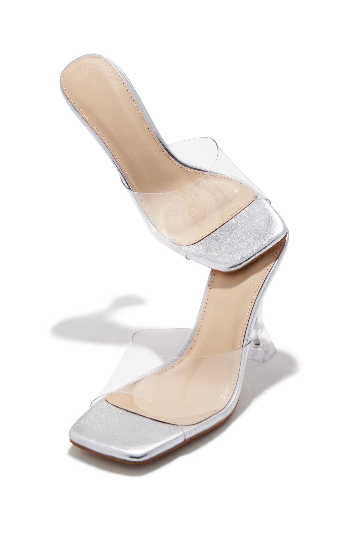 Demie Clear Strap Mule Heels - Silver