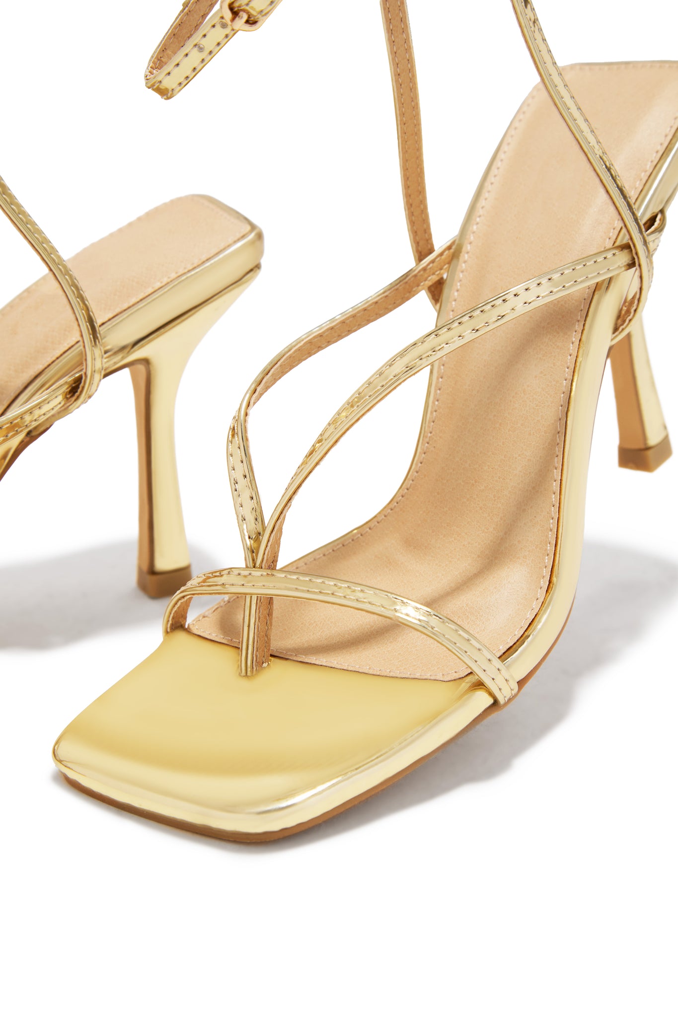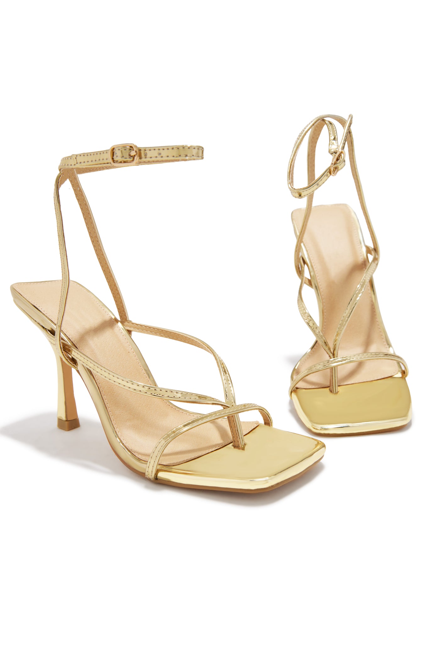 Step into style with our Eren Ankle Strap Heels - Gold. These heels feature an adjustable Mary Jane ankle strap, open square toe, and a thong strap for a comfortable and secure fit. The lightly padded insole adds extra comfort, making them perfect for all-day wear. Elevate your look with these versatile and chic heels.