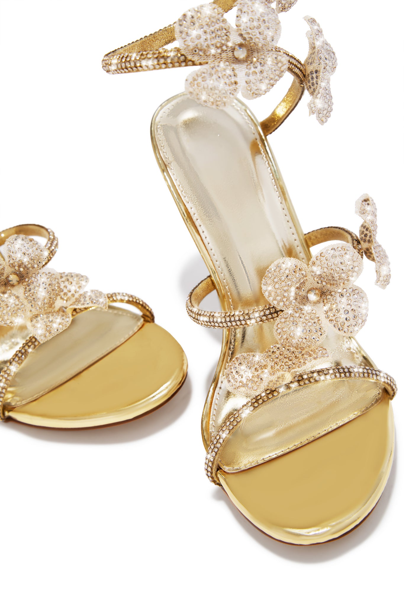 - Gold-Tone Embellished Around The Ankle Coil Heels