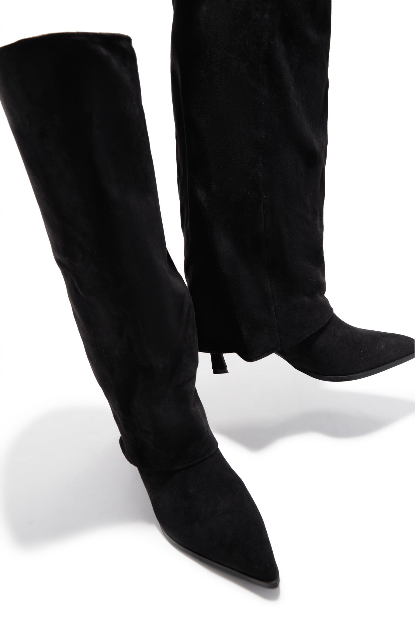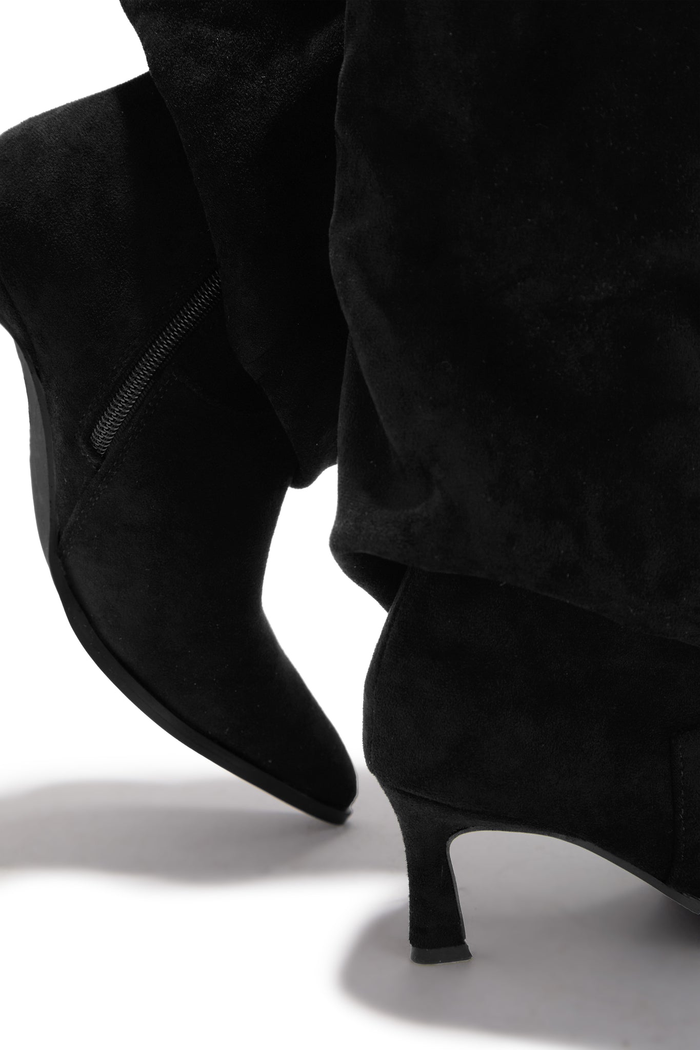 - Black Faux Suede Kitten Heel Shark Boots